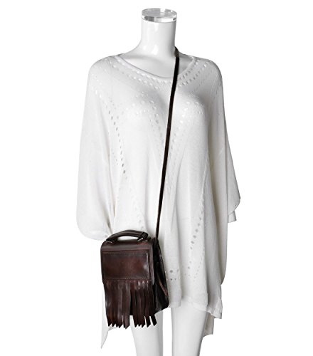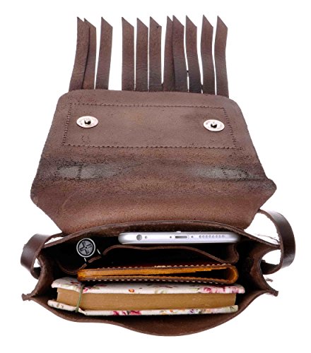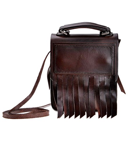 ZLYC Women Vegetable Tanned Leather Fashion Mini Shoulder Handle Bag with Tassels