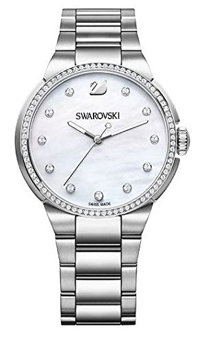 A fashionable timepiece with a sleek design for everyday wear. Case - stainless steel with 78 clear crystals on the bezel - 38mm. Dial - white mother-of-pearl. Numbers - 11 hand-applied crystal index markers with the Swan logo at 12 oclock. Strap - stainless steel - 20 cm.