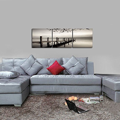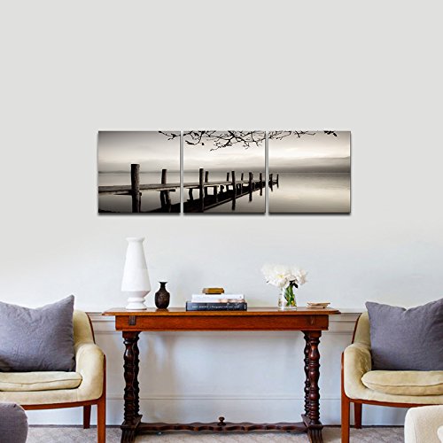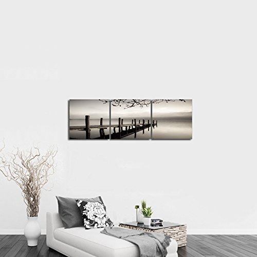 PYRADECOR PEACE 3 PANELS BLACK AND WHITE LANDSCAPE GICLEE CANVAS PRINTS ON CANVAS WALL ART MODERN STRETCHED AND FRAMED PICTURES PAINTINGS ARTWORK FOR LIVING ROOM BEDROOM HOME DÉCOR AH3018