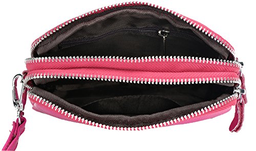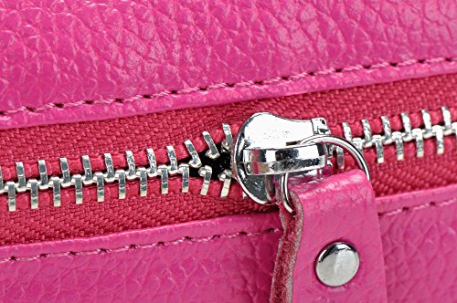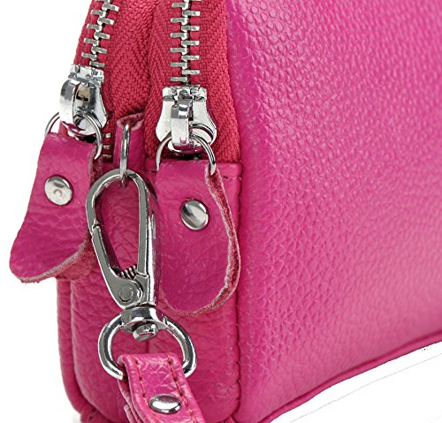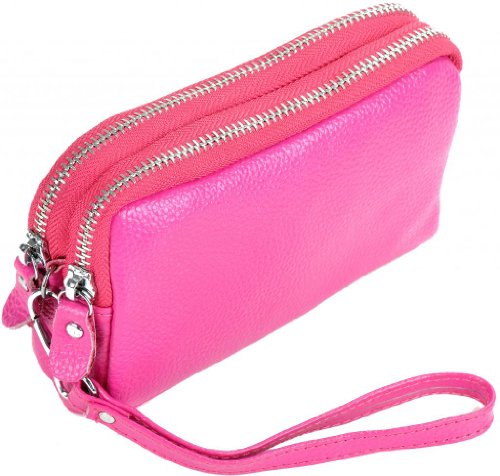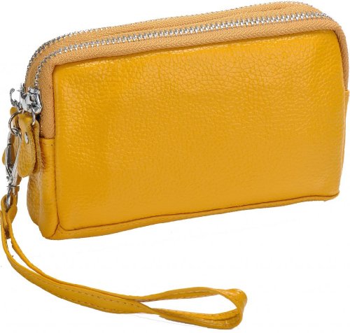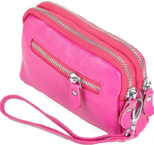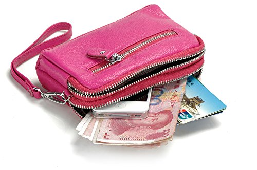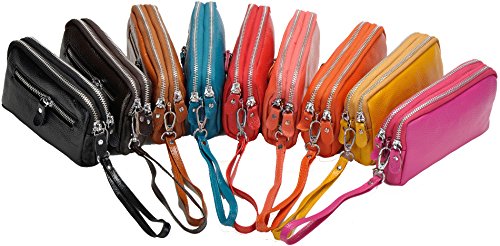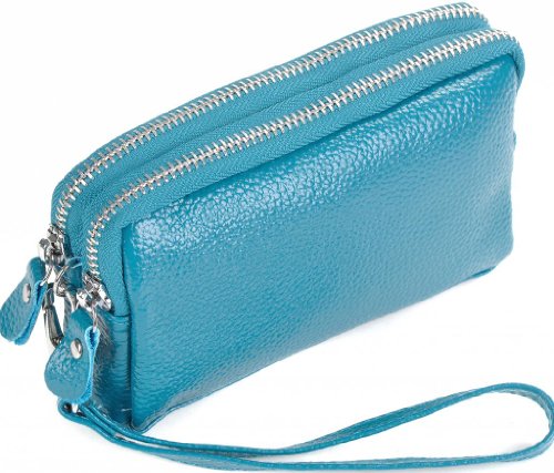 -. Feature : Double top zippered closure for your security. / High quality silver hardware & Polyester Lining. / Contain 2 main zippered pockets, easily holder your smartphoe, change, cash, card, keys and other little things.1 outer zippered pockets. / Comes with a detachable wrist strap. Easy to hold it. / Size info: (L)5.90*(H)3.54 *(W)1.37in, and weight is 0.22 pounds.