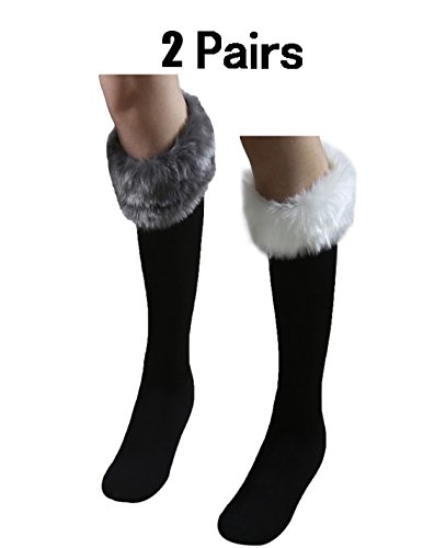 -. Brand : KAYLEE YOGA -. Department : womens -. Feature : You will receive 2 pairs of socks with very high quatity fabric / One Size Fits Most Women / Material: Faux Fur .There may be some fallen hairs attached during production, you may tap it slightly to remove the hairs. / You can create your own style with these ultra chic and trendy accessory -. ProductGroup : Apparel -. ProductTypeName : APPAREL -. Title : 2 Pack Womens Fashion Faux Fur Socks / Boots Cuffs Cover / Leg Warmers One Size White & Grey