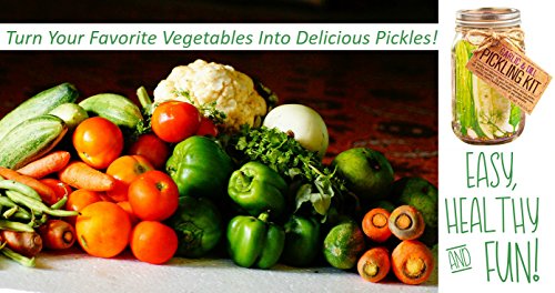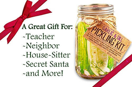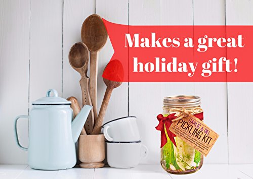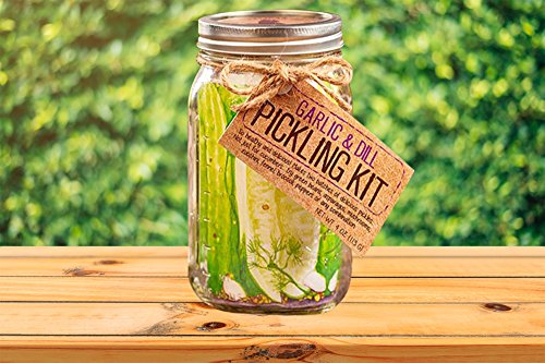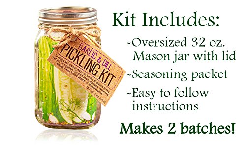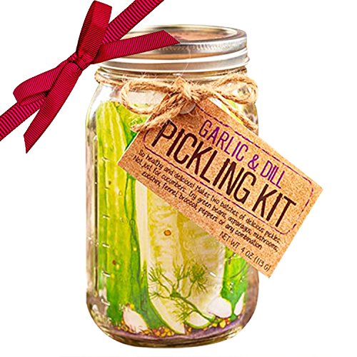 Enjoy the taste of pickles you made yourself with this Mason Jar Pickling Kit. An oversized Mason jar comes with all the seasonings you need to turn vegetables into their pickled cousins. Arrives with easy-to-follow instructions. Makes at least 2 jars. Finishing touches of jute bows and printed interior decoration turn this delicious kit into a ready-to-give gift. Jar holds 32 oz. Ingredients, 4 oz. Metal, plastic and glass. Turn vegetables into flavored pickles with a bit of magic and this kit. Not just for cucumbers! Each jar makes at least 2 batches Details: Jar holds 32 oz. Seasoning Ingredients, 4 oz. Metal, plastic and glass Allergy information: Made in a facility that also processes milk, egg, wheat, soy, peanuts and tree nuts. 0 |
