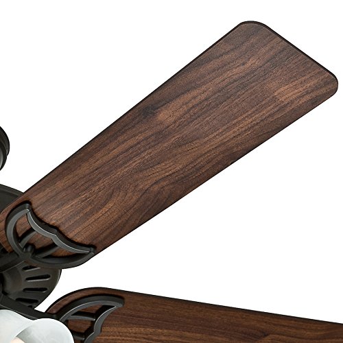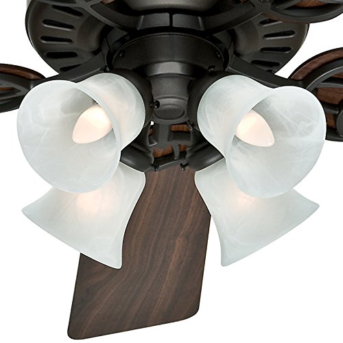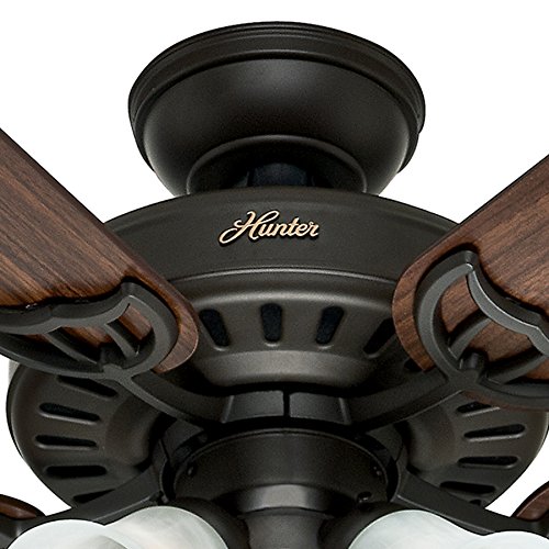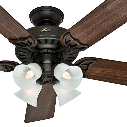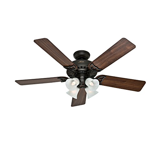 The most classic ceiling fan in Hunter's line, this traditional design with keep your room fresh and revitalized for years to come. Choose from a wide selection of finishes to make sure you pick the best option for your décor. This fan is big enough to move air in large spaces, and provides excellent lighting with its four exposed incandescent bulbs.
