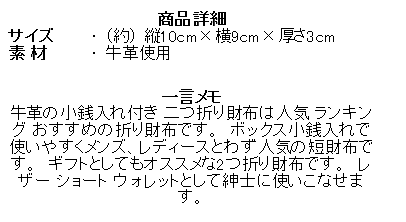 本牛革 2つ折りサイフ