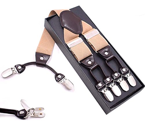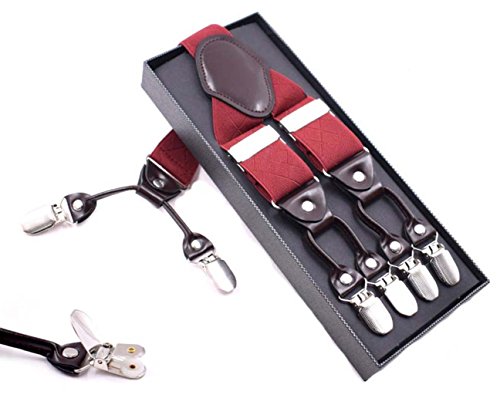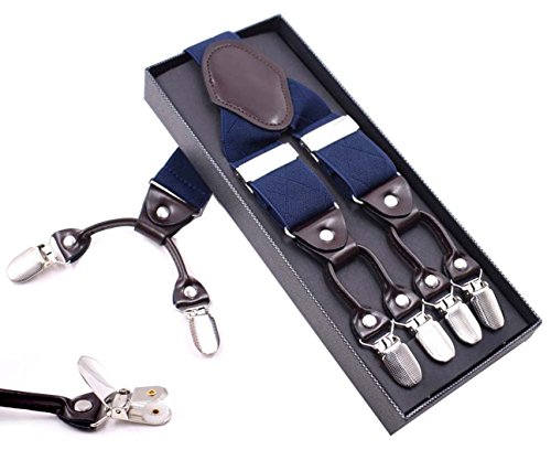 Binding : Apparel Product Description This suspender has a unique,functional alternative to the classic belt. A pair of clip-on suspenders are a distinctive and versatile way to provide trouser support. With wide elastic suspenders,you can spruce up your formal wear or show off a hip,trendy new way to rock a pair of jeans or shorts.Welcome to our MENDENG store, we are a specialty retailers for men's neckwear and other men accessories. We have been designing, producing, and retailing men's ties,handkerchiefs,bowties,cravat online. It is soft, light weight and exceptionally comfortable,Made of high material, can be used for long time,Specifications.We focus on tie many years, good quality interlining makes our ties heavy weighted and elastic, which are easily designed for a perfect knot. This kind of tie would be perfect for any formal or casual occasion. It comes in a range of designs and colors. It would make a perfect gift and a excellent addition to any man's wardrobe. We focus on design,produce,and retail men neckties,cravats,bowties,cuff links, handkerchiefs and other fashion accessories for men and women,higher quality lower price,it is worth to buy. Needless to say, we are passionate about ties. We are true tie aficionados, and we made it our mission to help you,our handsome man dress in style and out of standting. 0