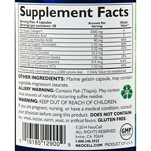 -. Binding : Health and Beauty -. Brand : NeoCell Laboratories -. EAN : 8592720367829 -. Feature : Vendor: NeoCell Laboratories / Item: NeoCell Fish Collagen plus HA - 120 Capsules / For: Anti-Aging / Item UPC No: 16185129009 -. Label : U-Nutra -. LegalDisclaimer : PLEASE NOTE: Product image is representative of the product offered but may not have the exact attributes. Please read product description for the specific attributes of this product. The information above is intended for reference only. While we attempt to keep our information accurate, we cannot guarantee it is an accurate representation of the latest formulation of the product. If you have any concerns, please visit the vendor's web site. The information above are the views of the product's manufacturer. These statements have not been evaluated by the Food and Drug Administration. This product is not intended to diagnose, treat, cure or prevent any disease. -. Manufacturer : U-Nutra -. MPN : 0865550 -. PartNumber : 0865550 -. ProductGroup : Health and Beauty -. ProductTypeName : HEALTH_PERSONAL_CARE -. Publisher : U-Nutra -. Studio : U-Nutra -. Title : NeoCell Fish Collagen plus HA - 120 Capsules