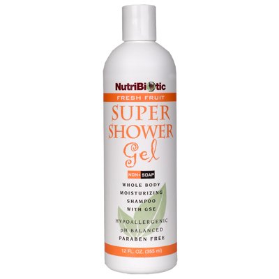 NutriBiotic Fresh Fruit Super Shower Gel is a moisturizing, non-soap, vegan, cleansing formula designed for your entire body, including your hair.