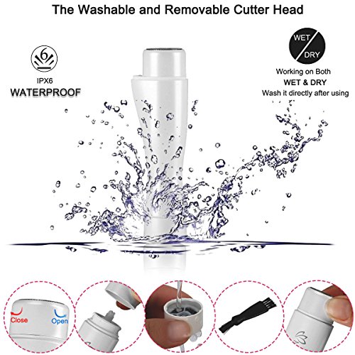 - USE IN THE BATHROOM AND EASY TO CLEAN: Flawless hair remover can work on both wet & dry even use it while you are in shower thanks to waterproof designed, you can twist and take off the washable and removable cutter head, rinse it under water directly after use, but do not immerse it in water for a long time to ensure long-term use.