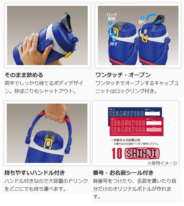 ペットボトルに比べ保冷時間が長く保て、真空断熱に比べると軽量で持ち運びもしやすいスポーツジャグです。氷を入れればさらに保冷力がアップします。ハンドルがスリムに収納され、両手でしっかり持てるボディデザイン。1.9Lの大容量なので、真夏の利用に最適です。 |
