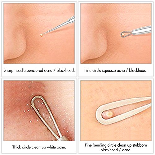 ❤️BLACKHEAD REMOVER FOR ACNE PIMPLE COMEDONE BLEMISH WHITEHEAD POPPING – 5 in 1 Blackhead remover kit serves you with professional face skin care, 5 different size loops and shapes effectively kill all types of pimples and acnes. No need to waste money in expensive beauty salon, no risk by removing blemishes with fingers.