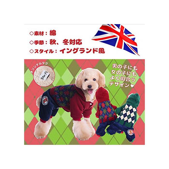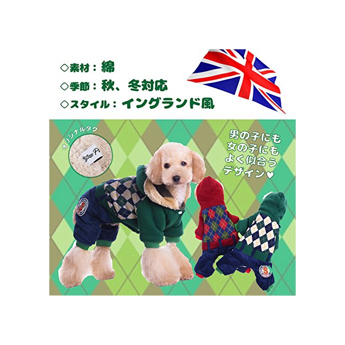 원본상품명:Phoenix 犬用 パ?カ? イングランド風 ア?ガイル柄 ロンパ?ス つなぎ サロペット 裏起毛 ボア 帽子付き 秋冬 ふわふわ 暖か トレ?ナ?生地 ドッグウェア 小型犬 中型犬