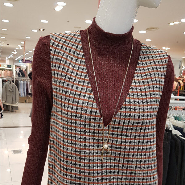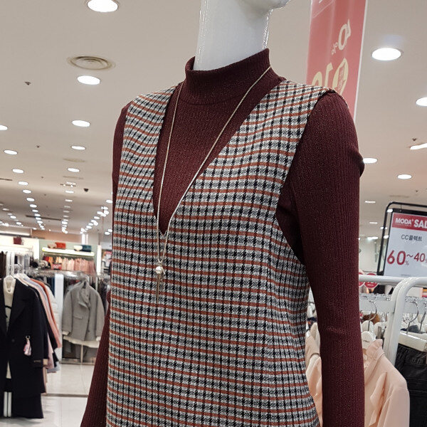 체크패턴에 세련하네용민소매스탈은 이너코디마다색다른 연출가능하시구요^^살짝퍼지는 밑단에 하체통통인 제가 ㅎ날씬해 보여 넘 좋으네용세련에 여성스런디쟌이랍니다