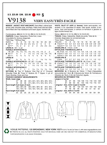 Vogue Patterns V9138 Misses' Jacket, Vest and Skirt, Size E5 (14-16-18-20-22)