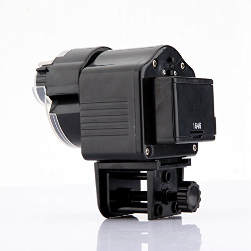 Studio : NDBD Publisher : NDBD Binding : Misc. Product Description Aquarium Automatic Food Feeders Item Description: Mini shape, space-saving. Extremely low power. Patented features - No jam, no clog and no fuss. Quick settings and easy-of-use. Can be operated automatically or manually. Feeding times:Can set to once or twice daily. Set up to 2 feeding times: 12H or 24H. Work with dry or loose flakes or pellets. Manual food volume adjustor. Has a built in digital clock for accuracy. Ideal for various sizes of aquarium with two options of placing the food feeder on acquarium: free standing or rim-mounted. Type of battery: 2*AA alkaline batteries (not included) Specification: Material: Plastic Color: Black Package Includs: 1 x Automatic Fish Feeder