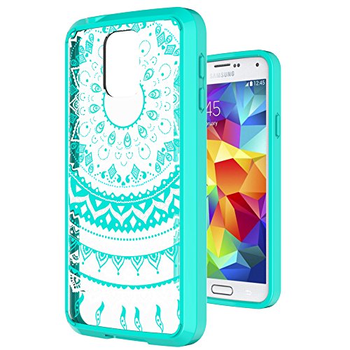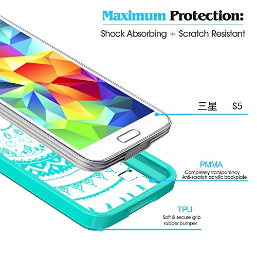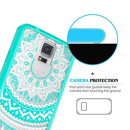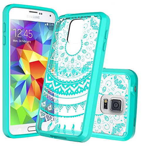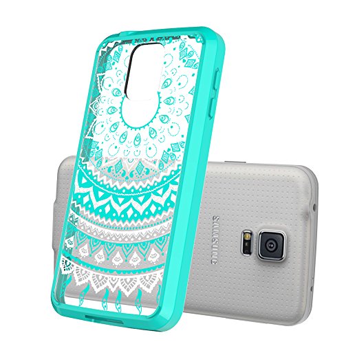 Anoke Slim Fit Colorful Mandala Flower Acrylic Hybrid Hard Rubber TPU Bumper Clear Case with HD Screen Protector for Samsung Galaxy S5 - CH Mint