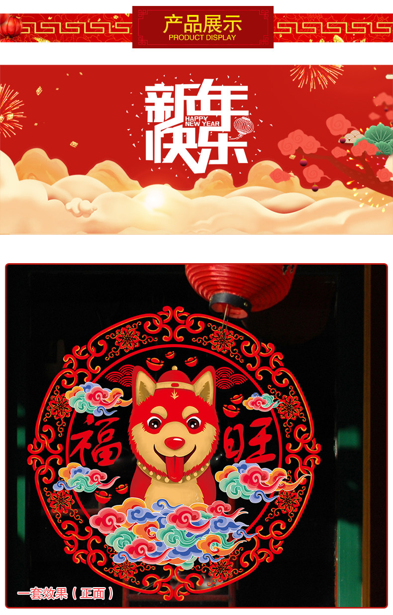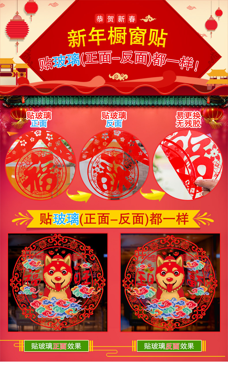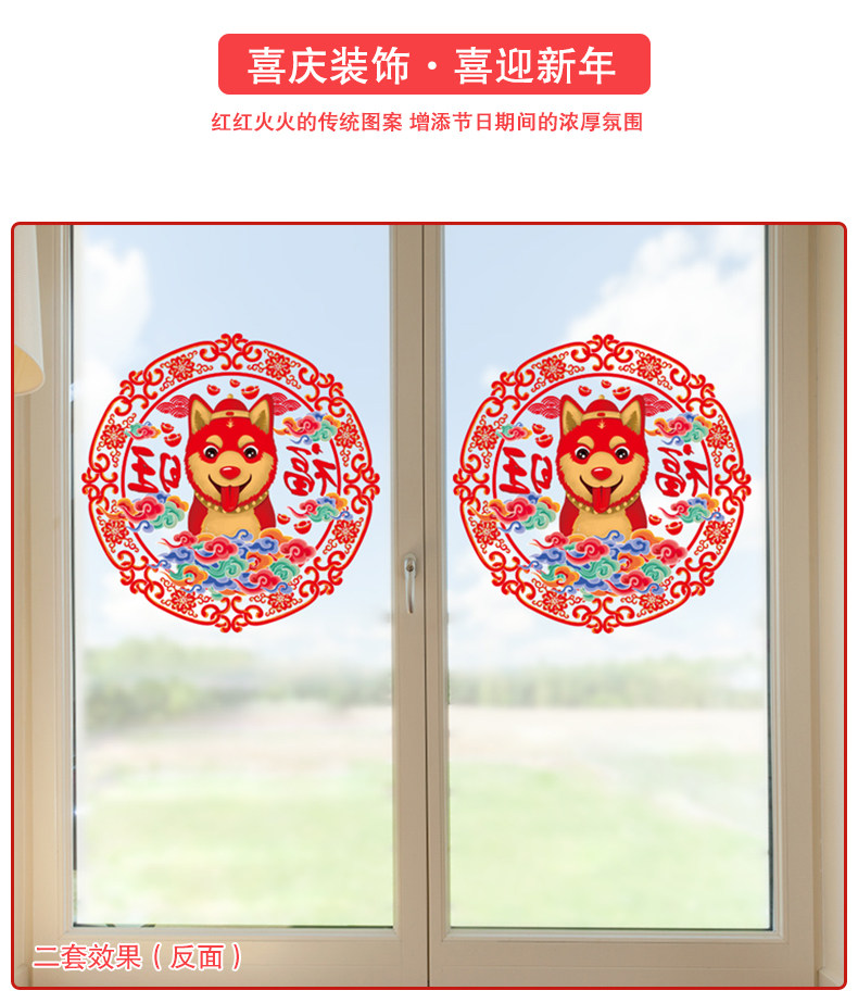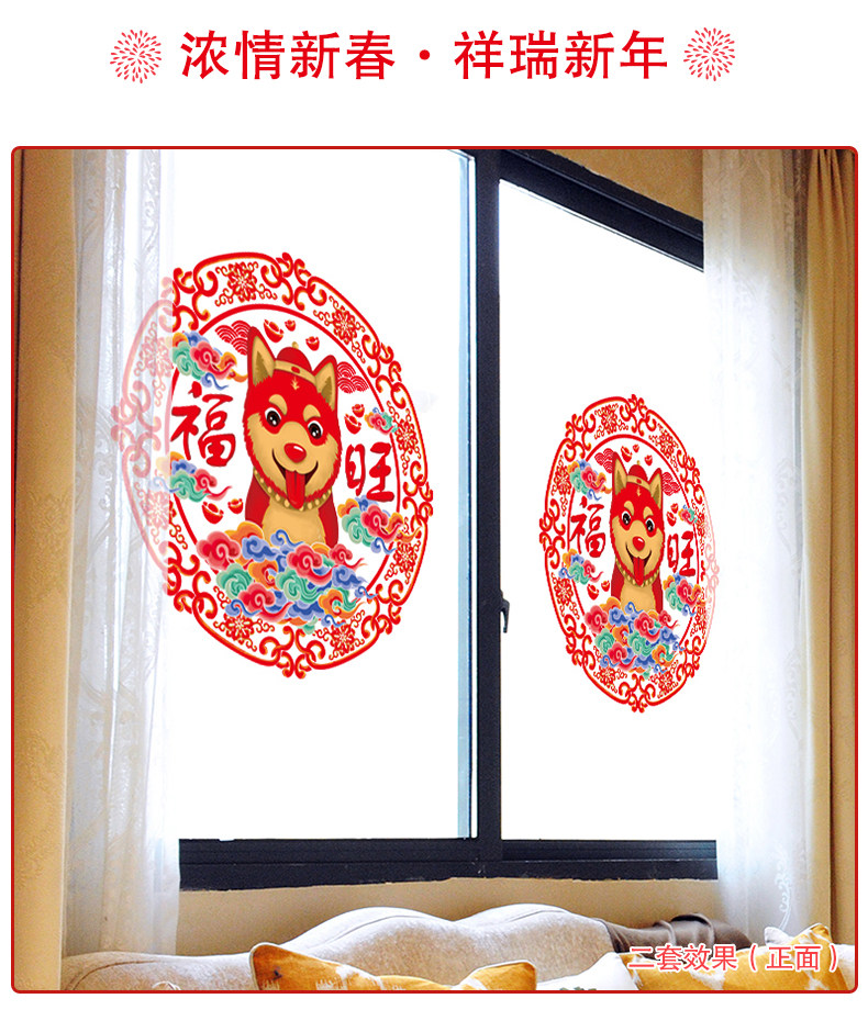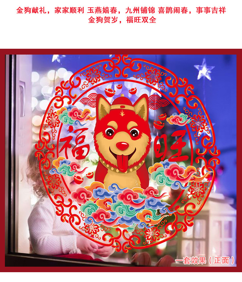 新年春节过年新春墙贴画玻璃橱窗贴纸窗花纸拜年娃娃剪纸门贴装饰
