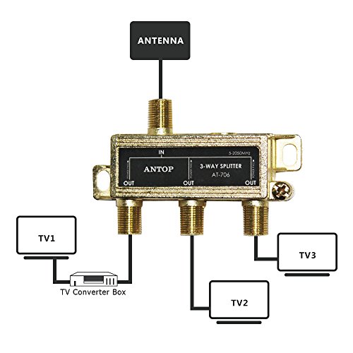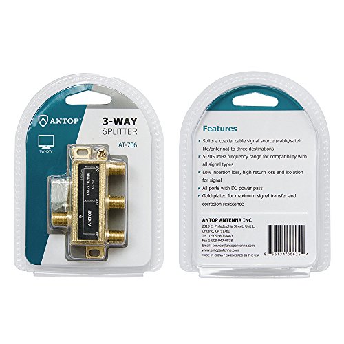 Studio : ANTOP ANTENNA INC. Publisher : ANTOP ANTENNA INC. Binding : Electronics Product Description The ANTOP 3-ways Splitter splits a single incoming coaxial signal, such as satellite signal, over-the-air HD (digital TV) antenna signal, into three outgoing signals.