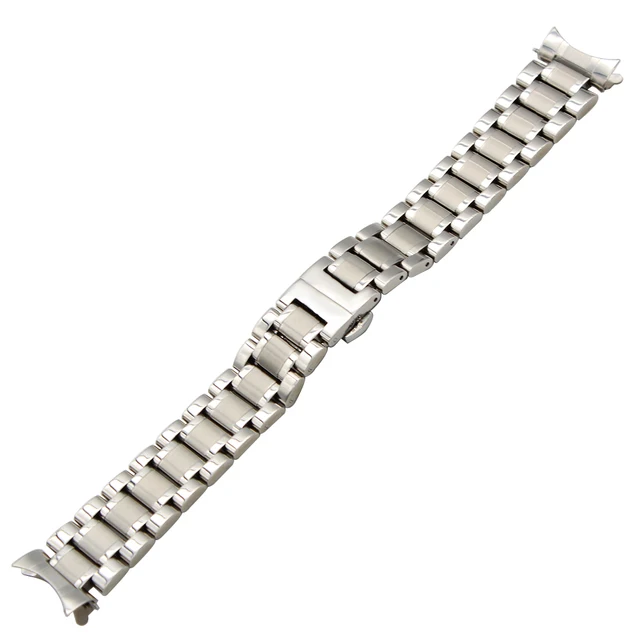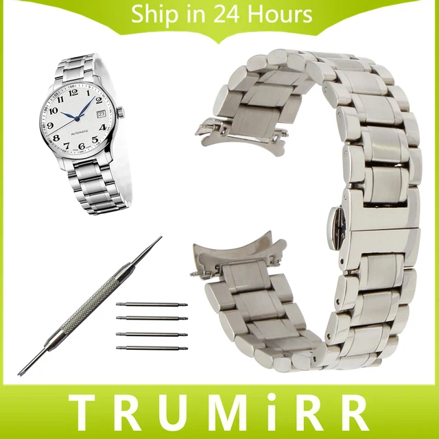 | [해외]19 미리메터 20 미리메터 스테인레스 스틸 손목 곡선 엔드 스트랩 longines 마스터 l2 시계 밴드 butterfly 버클 벨트 팔찌 실버 |