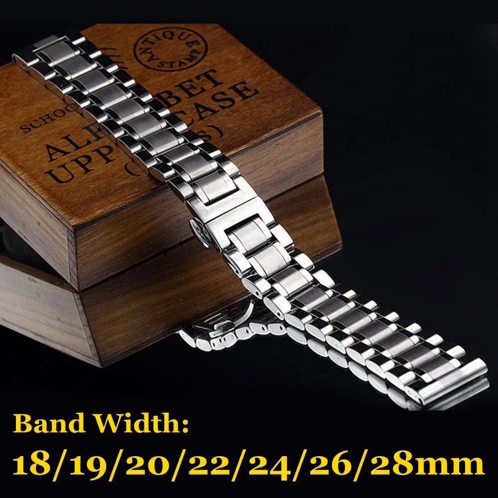 상품 내용 실버 스테인레스 스틸 밴드 18 미리메터/19 미리메터/20 미리메터/22 미리메터/24 미리메터/26 미리메터/28 미리메터 솔리드 남성 손목 시계 밴드 스트랩 손목 교체 시계 스트랩 제품 특징: