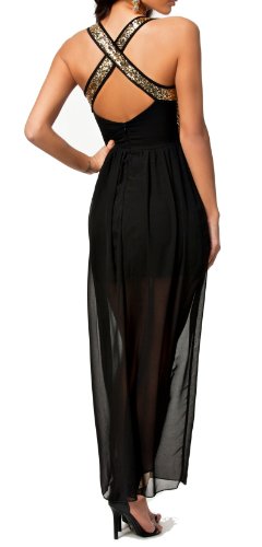 - Title : made2envy Gold Sequin Cross Back Chiffon Long Evening Dress (M, Black/Gold)