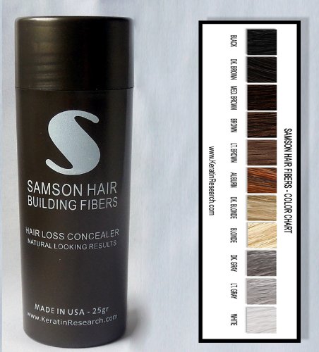 -. Binding : Misc. -. Brand : Samson Hair Fibers -. EAN : 0821040871883 -. Feature : Hot Concept- Refillable patented adjustable containers / The best hair building fibers-100% Money back Guarantee / 50% of most comparable brands / Original Samson Hair Fibers Instantly fills in balding & thinning areas / Builds hair with natural fibers , No wool, no irritations, No Mess -. Label : Keratin Research -. Manufacturer : Keratin Research -. MPN : HFCTLB -. PackageQuantity : 1 -. PartNumber : HFCTLB -. ProductGroup : Beauty -. ProductTypeName : BEAUTY -. Publisher : Keratin Research -. Studio : Keratin Research -. Title : LIGHT BROWN Samson Best Hair Loss Concealer Building Fibers CONTAINER With 25grams FREE SHIPPING USA Also Fits Toppik Xfusion Spray Applicators -. UPC : 821040871883