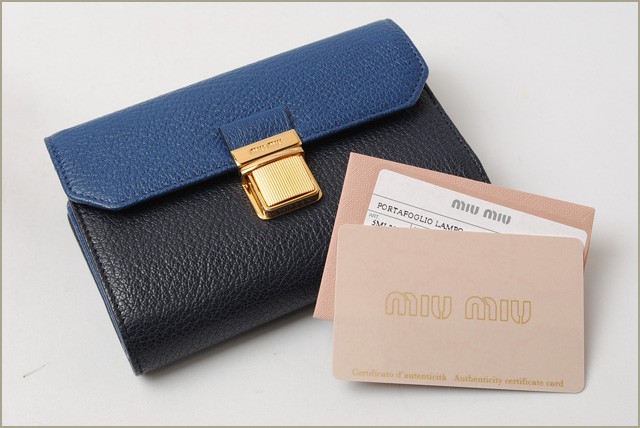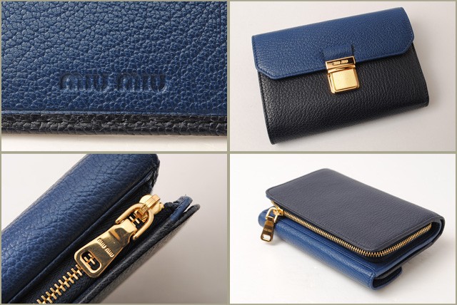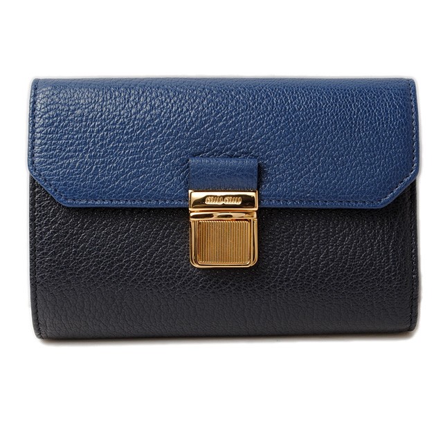 ミュウミュウ 財布miumiu 3折財布 5ML225 MADRAS/マドラスレザー COBALTO/BALTICO コバルト/ブルー系ミュウミュウより、マドラス・ラインの折財布です。ミュウミュウより、人気の高いマドラスシリーズです。センターのシンプルな金具がアクセントに!山羊革の型押しレザーで、高級感の漂う、しなやかな肌触り。2層に別れた大きめのコインケースは、小銭が多くなりがちな方にもおすすめです。お買い物時にも、ポケットお札、レシートやチケットなど、区分けしやすいデザインです。商品番号 miu-16-149 サイズ 約:W14×H9.5×D3 (cm) 素材 MADRAS TUC BICO/マドラスレザー カラー COBALTO/BALTICOコバルト/ブルー系 付属品 箱、ギャランティーカード(直営店印あり) 製造番号 特徴 【 外側 】○プレスロック式開閉部○L字ファスナー式ポケット/2層【 内側 】○札入れ×1○カードポケット×10○オープンポケット×4 商品状態 程度 :ランクN○新品、未使用品。
