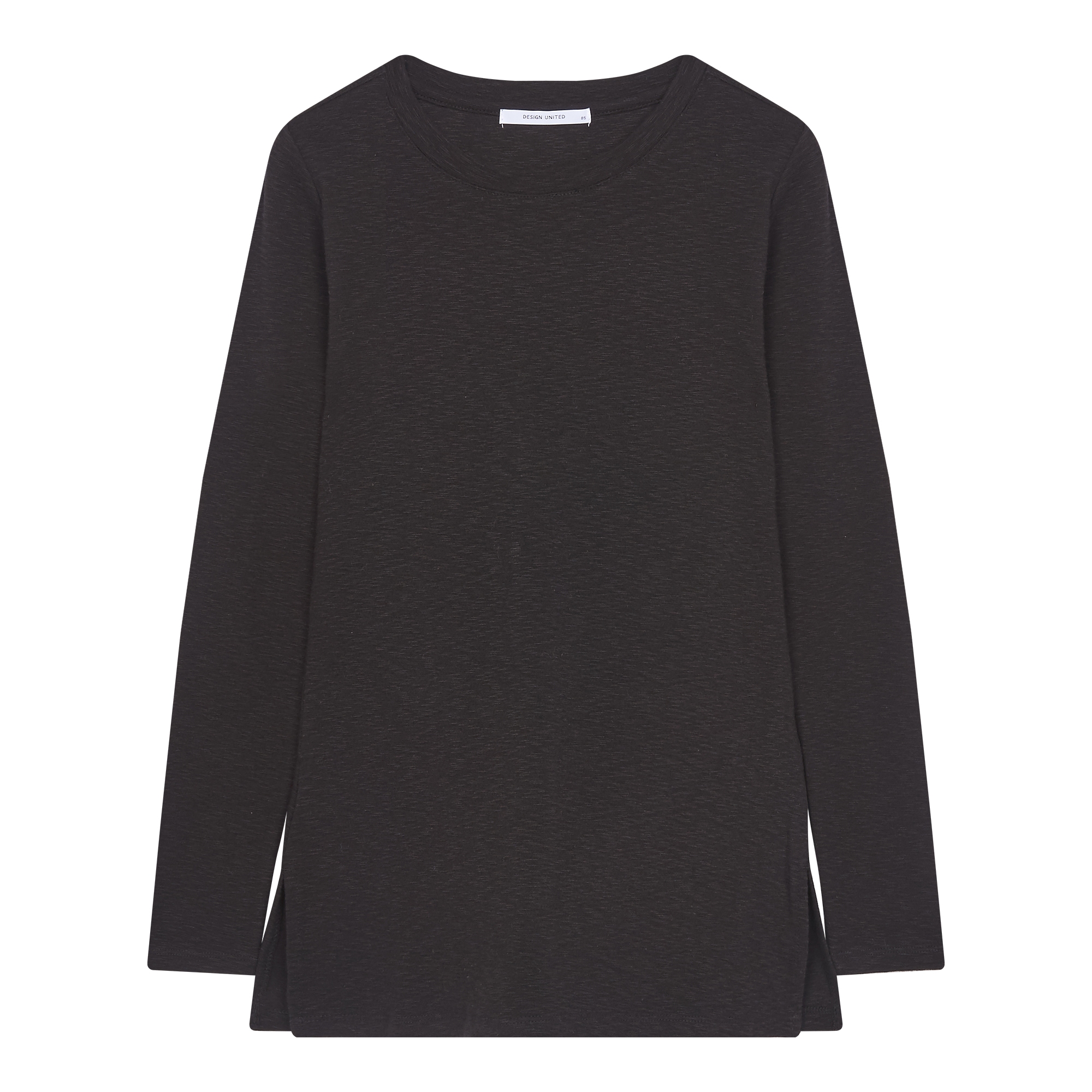 컬렉션 : 2017 Spring/Summer 디자인 포인트 : - 신축성이 좋은 슬럽원단을 이용한 슬림한 라인의 라운드 티셔츠 - 옆라인 트임을 주어 활동성 강조 스타일링 추천 : 이너웨어 및 레이어드가 용이한 베이직한 아이템