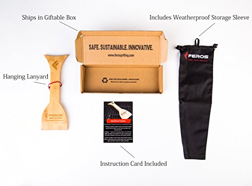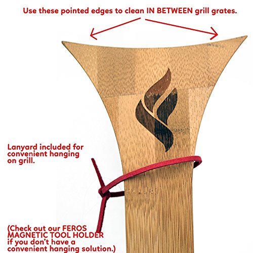 FEROS Safer Scraper - Wood BBQ Wooden Grill Cleaner + FREE Waterproof Storage Bag! Cleans top AND BETWEEN barbecue grates. Use to oil & clean barbeque. Sustainable replacement for wire bristle brush
