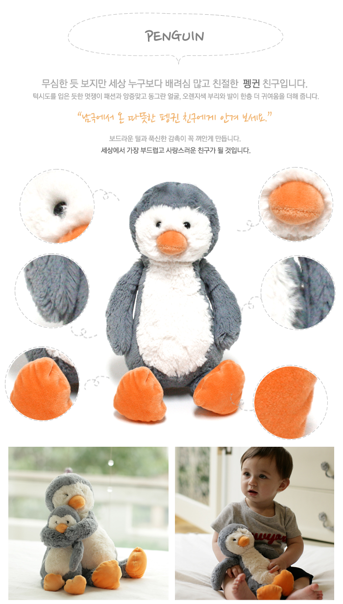 丸い顔にオレンジのくちばしがとても可愛いペンギンのぬいぐるみです。