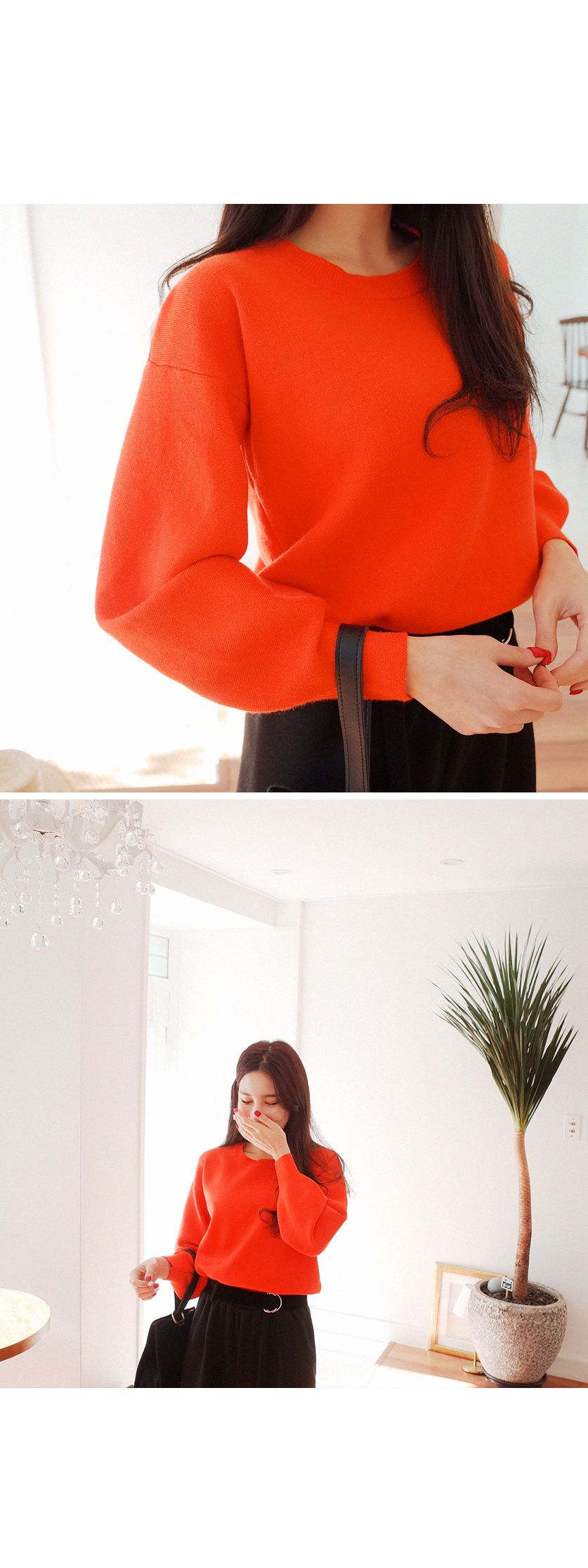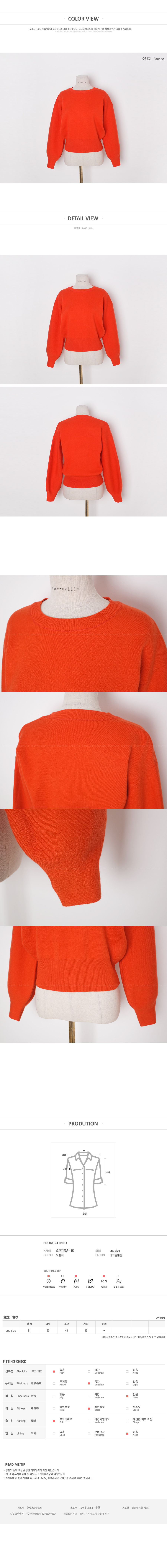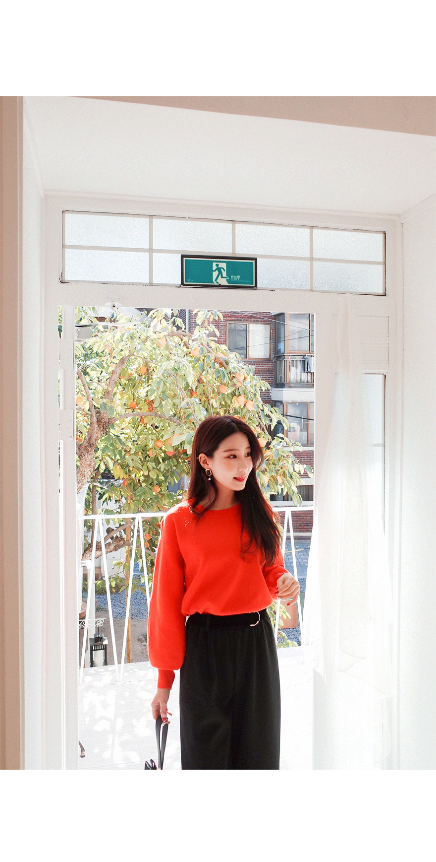라운드넥 스타일이며 볼륨감있는 소매 디자인이