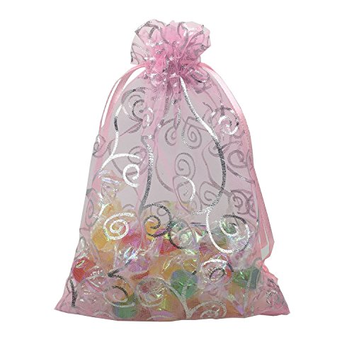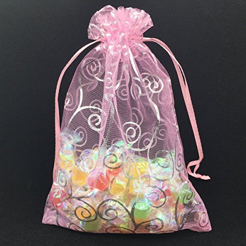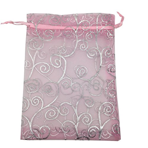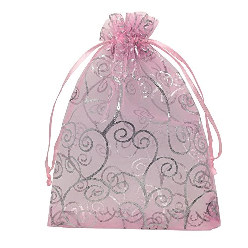 YIJUE Drawstrings Organza Gift Candy Bags Wedding Favors Bags (5"x7", Pink and Silver)