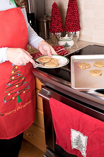 Red Merry Christmas Tree Apron By Clever Creations | One Size Fits Most | Holiday Red and Green Christmas Theme | Great for the Chef Baking and Cooking Christmas Dinner