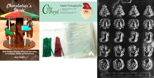 Cybrtrayd B.S. Assorted X-Mas Chocolate Mold with Chocolatier's Bundle of 50 Cello Bags, 25 Green and 25 Red Twist Ties and Chocolatier's Guide