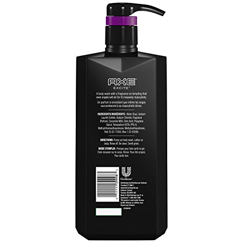 More of what you like. AXE Excite Body Wash in an ultra size, easy-to-dispense 28oz pump. AXE Excite Body Wash makes you feel clean, fresh, and rejuvenated. AXE Excite Body Wash for men has an addictive woody fragrance with a hint of sweetness: coconut, hazelnut, and caramel notes that lets you be reborn every morning and night. To use, squeeze out the body wash into your palm and work into a foamy lather through your body. Rinse thoroughly and finish with your favorite AXE fragrance. To improve your shower experience, try the AXE Shower Detailer. Simply pour your AXE Excite Body Wash onto the AXE Detailer - a dual-sided shower tool that helps to both exfoliate and gently clean. The scrub side of the AXE Detailer removes dead skin and debris from rough spots like elbows and heels. Soft mesh on the flipside lathers to clean sensitive areas. Simply hang it to dry in the shower after getting clean. AXE Excite Body Wash is also available in Antiperspirant Stick, Daily Fragrance (previously known as body spray), Deodorant Stick, and Shampoo plus Conditioner for all of your grooming needs. Find Your Magic with AXE – The No. 1 Male Body Wash Brand in the World. *Source: Euromonitor International Limited; Men's bath and shower retail value sales, 2015. Lynx includes all Axe/Lynx/Ego SalesFeature