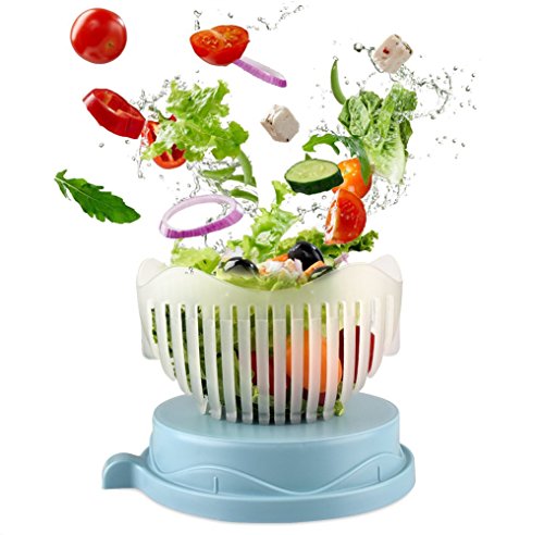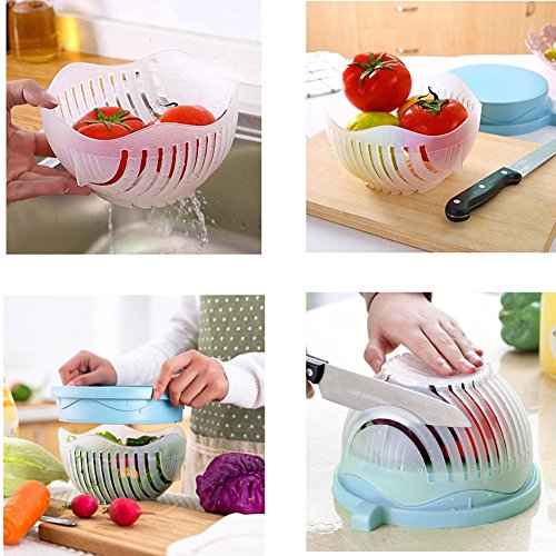 Salad Cutter Bowl, 60 Seconds Salad Maker Bowl Vegetable Fruit Cutter Chopper Bowl Make Your Salad Easily, Blue