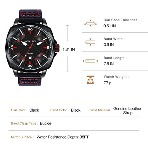 Brand, Seller, or Collection Name:LONGBO Part Number:43219-66068 Item Shape:Square Dial window material type:Glass Display Type:Analog Clasp:Buckle Case material:Metal Case diameter:1.81 inches Case Thickness:0.51 inches Band Material:Calfskin Band length:Men's Standard Band width:0.90 inches Band Color:Black Dial color:Black Bezel material:Stainless steel Bezel function:Calendar Calendar:Date Special features:Shock resistant Item weight:9.60 Ounces Movement:Quartz Water resistant depth:98 Feet