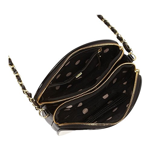 - Feature : Two top zip compartments with middle open entry compartment featuring a magnetic snap closure / Adjustable crossbody strap with chain-link detail and 23 drop length / Front top zip compartment features four card slots / Back top zip compartment features a zipper pocket / Gold tone hardware details