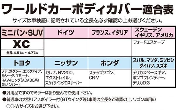 | 高級厚手生地を使用したボディカバーです。ワンタッチ風飛び防止ベルト2ヶ所(前後バンパー部)付き☆縫い目部分は2本針で厳重に縫製されています。シートや内装の日焼け防止はもちろん、ナビ・オーディオ等の盗難防止にも効果的です。 |