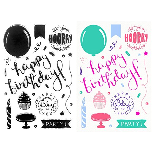 -. Feature : Clear Stamps - Happy Birthday / Collection contains 19 clear stamps on a 6 x 4 inch backing sheet / Themed images works together for endless design opportunities / Made in the USA of photopolymer for crisp impressions; black design indexing=easy image positioning / Super easy to use - just peel off the backing & position on an acrylic stamp block (sold separately)