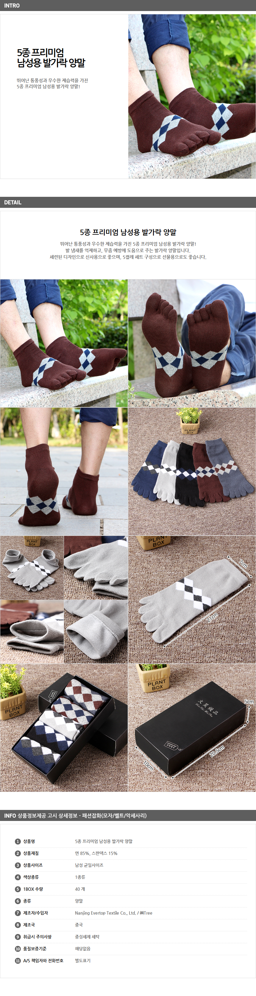 Dehumidifying power premium men's toe socks 5 pairs of ventilation