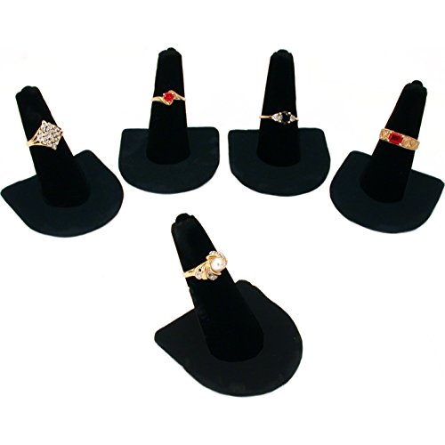 5 Black Velvet Ring Finger Jewelry Holder Showcase Display Stands