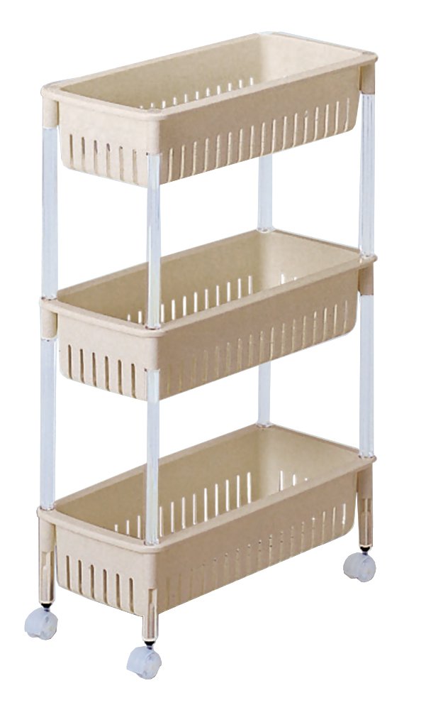 A convenient basket wagon for organizing kitchen and other items.
