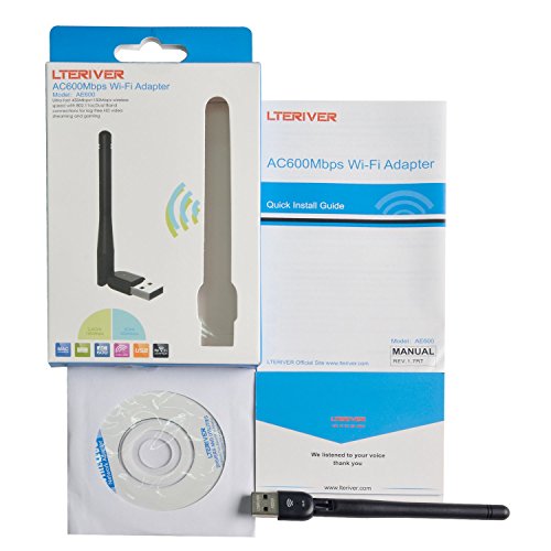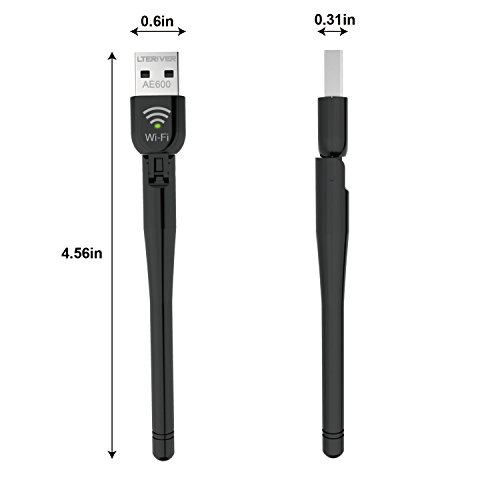 -. Binding : Electronics -. Brand : LTERIVER -. EAN : 0712411938703 -. Feature : LTERIVER 802.11 AE600 super-fast (5G433+2.4G150Mbps) Wi-Fi adapter backward compatible with 802.11n/g/b protocol for desktop,laptop and ultrabook. . / With high performance external antenna provide 2.4G&5G Dual Band connections for lag-free HD video streaming ,gaming or online call. / Compatible with Windows &MAC OS.Windows System: Windows XP/ Vista/7/8/8.1/10/10.1;Mac System: Mac OS 10.6/10.7/10.8/10.9/10.10/10.11.1/10.11.2(Not Support 10.11.3/4 now). / Easy Install: Use Setup CD or Download from our site ,complete the setting in few steps. / Update the wireless network card by USB ports without disassemble the desktop,laptop or ultrabook. -. Label : LTERIVER TECHNOLOGY LTD -. Manufacturer : LTERIVER TECHNOLOGY LTD -. Model : AE600 -. MPN : AE600 -. OperatingSystem : Linux -. PackageQuantity : 1 -. PartNumber : AE600 -. ProductGroup : PC Accessory -. ProductTypeName : COMPUTER_COMPONENT -. Publisher : LTERIVER TECHNOLOGY LTD -. Studio : LTERIVER TECHNOLOGY LTD -. Title : LTERIVER 802.11AC 600Mbps Dual Band(2.4G&5G) Wi-Fi Adapter with External Antenna Supports Windows XP/Vista/7/8/8.1/10/10.1 and Mac OS 10.6~10.11.1/10.11.2(External Antenna Version) -. UPC : 712411938703