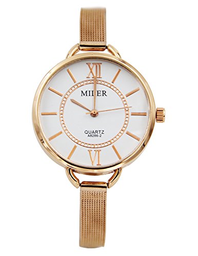 -. Binding : Watch -. Brand : AGENTX -. Color : White -. Department : Womens -. ProductGroup : Watch -. ProductTypeName : WATCH -. Title : Elegant Slim Mesh Women Ladies Quartz Watch With White Dial Rose golden Round Case