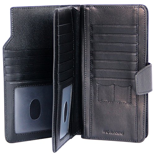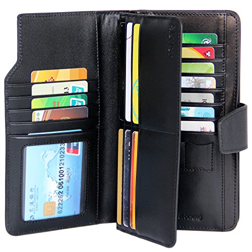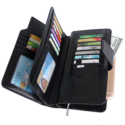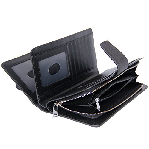 -. Feature : ★EXCELLENT QUALITY: Crafted in refined cross grain leather RFID blocking wallet with a rich texture. / ★LARGE CAPACITY: 2 ID window, 23 card slots, 7 full-length bill compartments, 2 SIM slots, 1 generously sized zip pockets for coins. / ★TESTED SAFE: Women rfid wallet customer tested and recommended,protect your valuable data - block RFID readers from scanning your credit cards, debit cards, banking information, smartcards, RFID driver's licenses and other RFID cards. / ★FASHION DESIGNS: Design by Italian designer Giovanni Baggio,combining with long wallet and card holder, large capacity with elegant black rfid wallet slim apperance and can be used as a purse and hand bag, suitable for varieties of clothing and different occasions. / ★PACKING AND SERVICE: Black paper gift box packaging, including leather care instruction card. It's a best gift for friends. We know you'll love our wallet as much as we do, If for any reason you're not 100% SATISFIED, let us know and our customer service team will make things right: full refund or a free replacement, whichever you prefer.