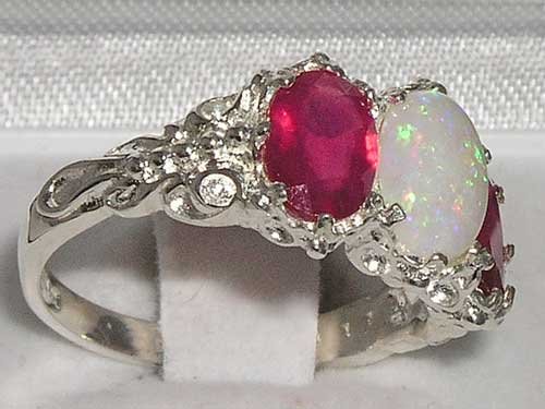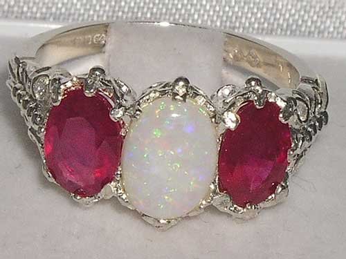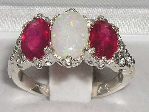 -. Feature : Made in England / Natural Opal & Ruby / Real Solid Sterling Silver / Sizes 4 to 12 Available including quarter and half sizes / Supplied in a FREE Luxury Ring Box