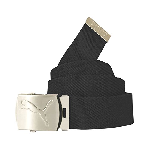 The Puma Golf Spectrum Web Belt features a raised PUMA Cat logo on brushed nickel buckle with polyester strap.