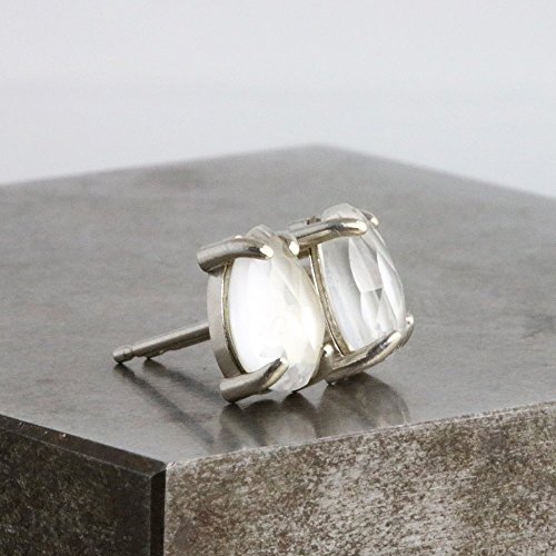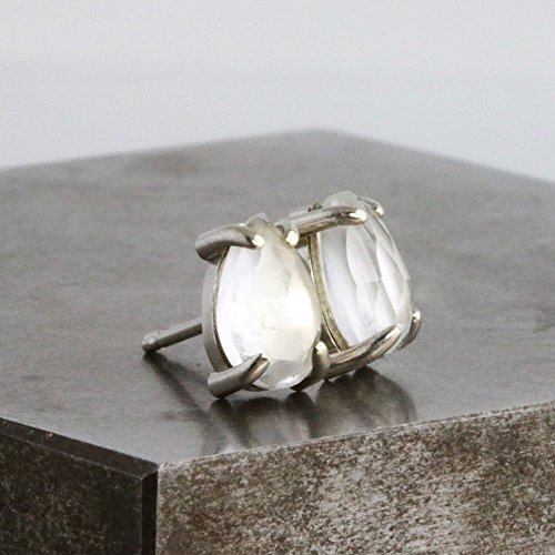 -. Title : Pear Stud Earrings with White Topaz - 14k White Gold with 5mm x 8mm Natural Stone