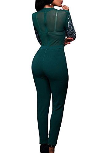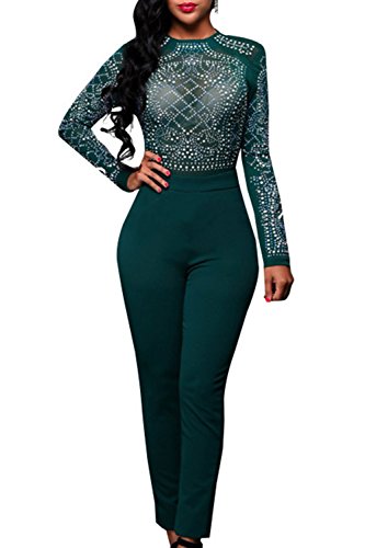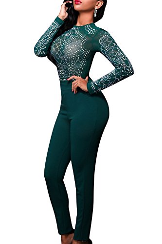 Title : Pretid Women Sexy Long Sleeve Rhinestone Embellished Slim Bodycon Jumpsuit
