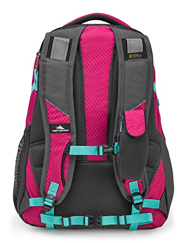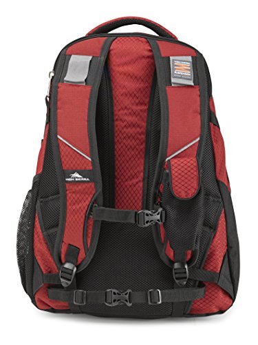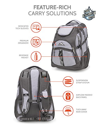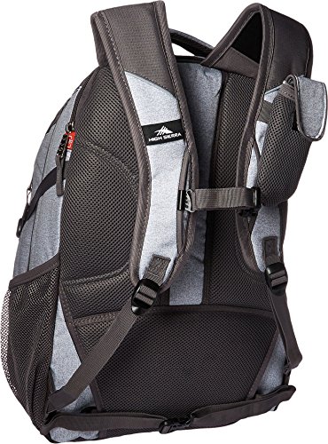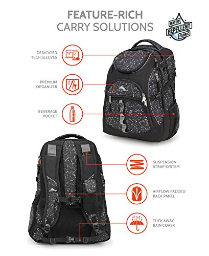 Amazon.com With plenty of compartments and lots of easy ways to get to your gear, the High Sierra Access backpack is ideal for people constantly on the move. The Access offers a large front compartment with a convenient side-access along with a premium multi-pocket organizer with a removable key fob. Toting your digital tools is just as easy thanks to the Cushion Zone padded computer sleeve, which holds most 17-inch notebook computers. And for your smaller electronics, you can turn to the easy-access deluxe media pocket. The media pocket--which includes a headphone port--holds several sizes of cell phones, PDAs, and MP3 players. There's even a mesh beverage compartment on the side, so you can bring an extra water or iced tea bottle on longer excursions. Comfort-wise, the Access is equipped with S-shaped shoulder straps with Vapel mesh Airflow padding. The straps work in conjunction with the built-in suspension system and adjustable sternum strap to distribute the weight evenly across your body. Other details include a padded back panel with a tuck-away waist belt, a Vapel mesh padded grab handle, a removable media/cell phone pocket, adjustable side compression straps, and a tuck-away rain cover. Specifications: - Capacity: 2,743 cubic inches